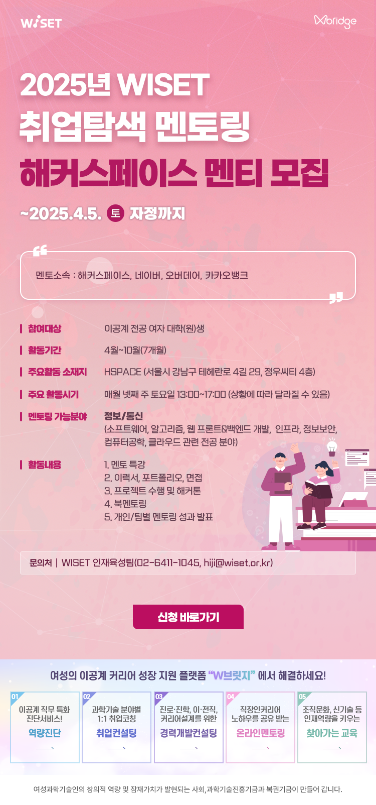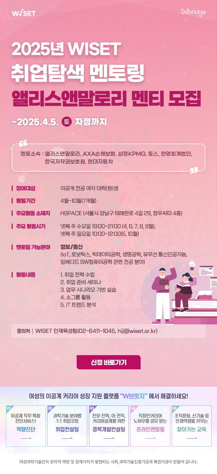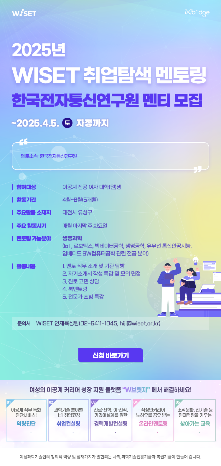 - 2025학년도 WISET 취업탐색 멘토링 참여 이공계 대학(원)생 멘티 모집