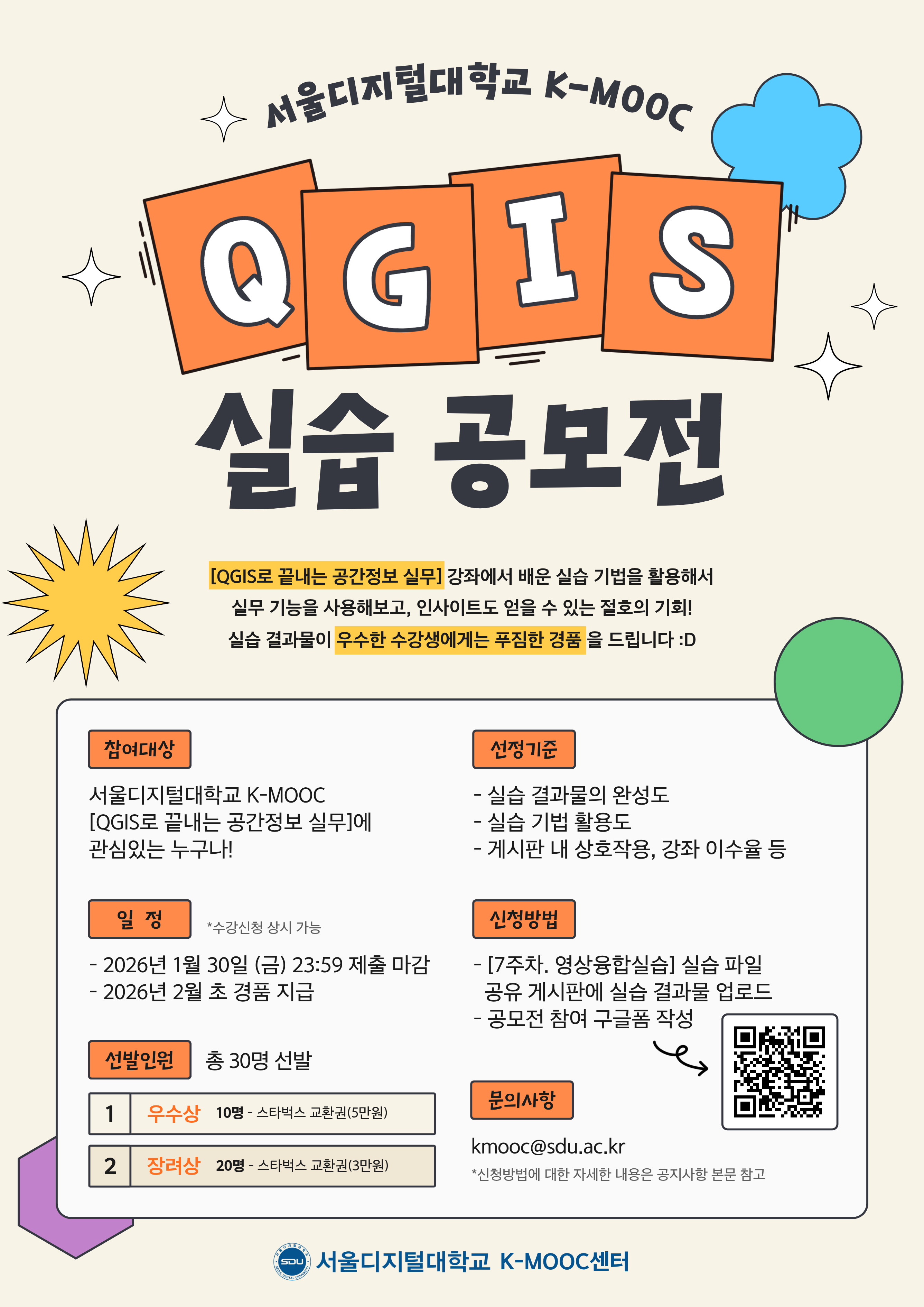 - 서울디지털대학교 2025년 2학기 K-MOOC QGIS 실습 공모전 안내